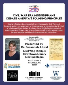 Civil War Era Mississippians Debate America’s Founding Principles by Dr. Susannah J. Ural