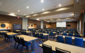 Courtyard Marriott is a beautifully designed and decorated hotel with a state-of-the-art lobby with The Bistro in the center of it all that offers comfortable seating and gathering areas and serving high quality, healthy menu options for breakfast or dinner. Enjoy a variety of cocktails, wine and beer in the evening in the inviting social spaces to work or relax. Media Stations provide easy access to the latest news, weather and airport conditions. Over 3,300 square feet of event space is adjacent to the lobby; ideal for corporate or social events. Its location is close in proximity to area businesses and thoroughfares. This hotel is the perfect place to escape to a comfortable room at the end of a day.